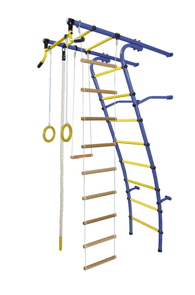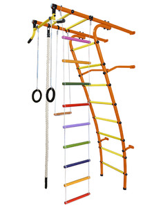 «Стелла» - отличный спортивный уголок для девочки. Турник, кольца, канат и лестница – эти четыре снаряда и шведская стенка необычной конфигурации – отличный гимнастический комплекс для развития гибкости, ловкости и формирования идеальной осанки. Красочное оформление и богатство цветовых вариантов позволит выбрать комплект по вкусу и приобрести не только полезную и функциональную вещь, но и украсить ею интерьер детской.