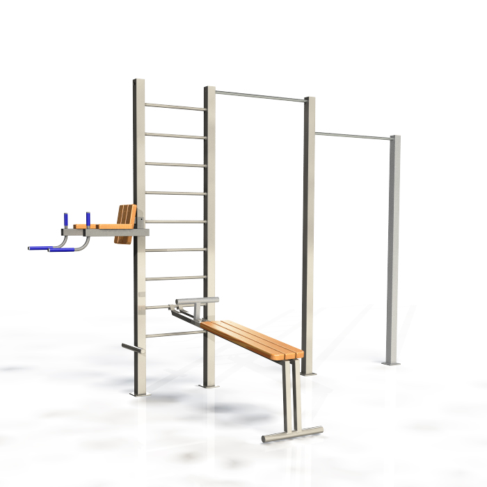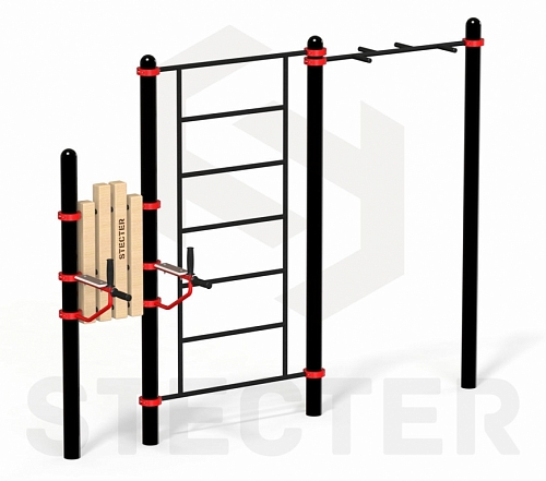 комплекс из шведской стенки, тренажера брусья-пресс, комбинированного турника с широким и узким хват