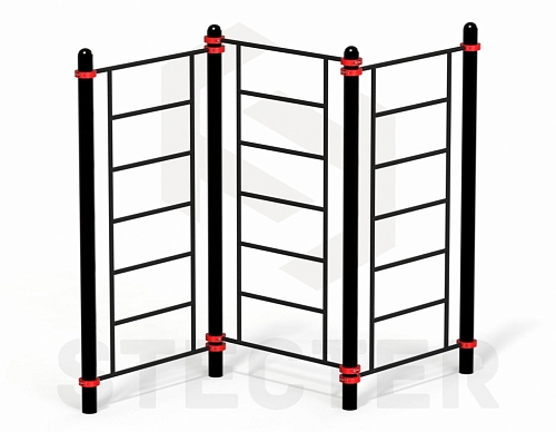 Комплекс из шведской стенки, тренажера брусья-пресс, комбинированного турника с широким и узким хват