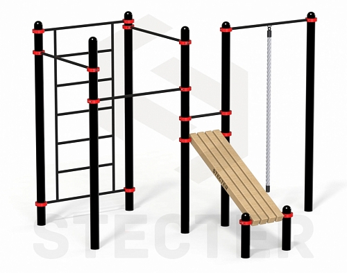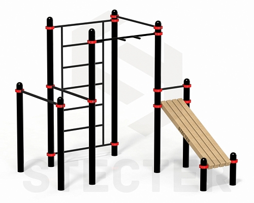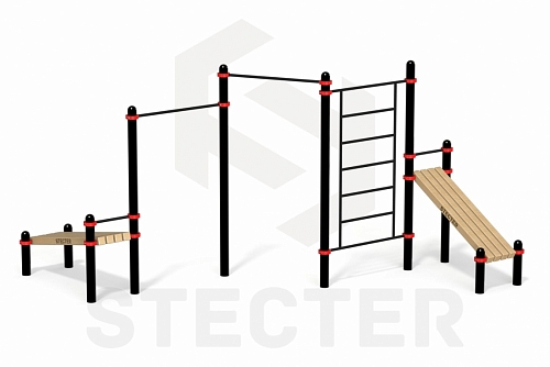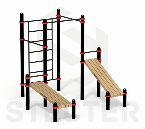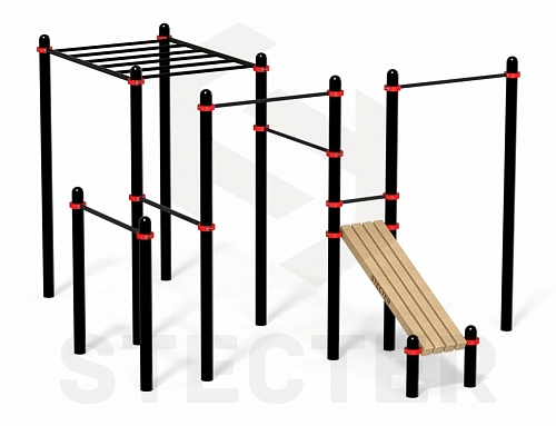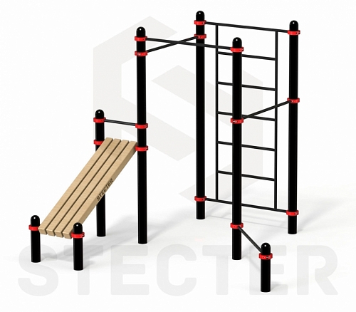 Комплекс из рукохода, брусьев, турников и наклонной лавки для пресса (PAW-54)