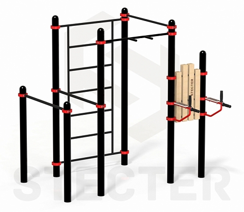 Комплекс из шведской стенки, 2 турников разновысотных и 2 лавочек для пресса (PAW-41)