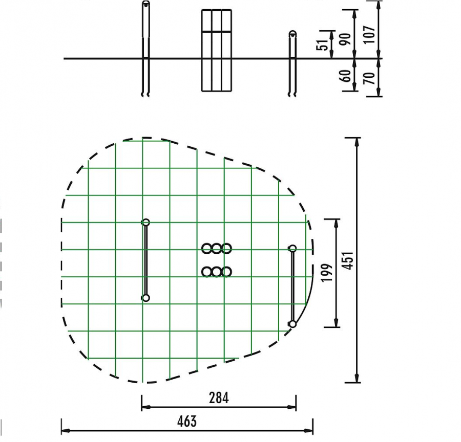 Комплекс из разновысотных турников и дорожки из брусьев (PAW-55)