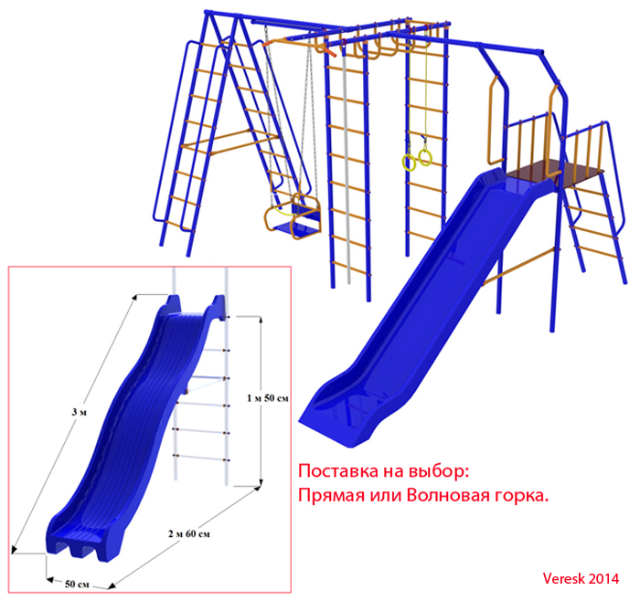 уличный дск вереск "веселый непоседа №19" с горкой с качелями на цепях