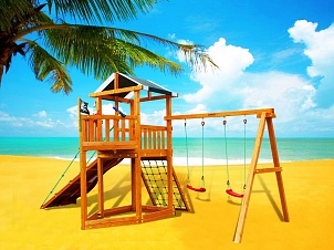 детский городок jungle gym jungle palace + jungle cottage + bridge link + rock + рукоход +сидушка