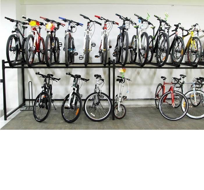 стеллаж двухьярусый для хранения велосипедов на складе или в магазине на 12 мест